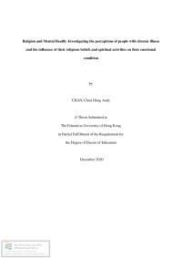 Lo, Po YanReligion and mental health : investigating the perceptions of people with chronic illness and the influence of their religious beliefs and spiritual activities on their emotional condition /
