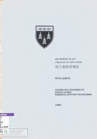 Hong Kong Sir Robert Black College of EducationSyllabus : full-time one-year course for teachers of children with special educational needs, 1993 /