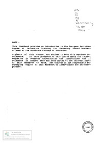 Hong Kong Grantham College of EducationHandbook for Part-time Two-year Course (Secondary) /