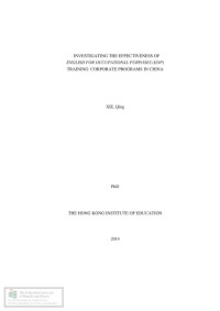 Hong Kong Institute of EducationInvestigating the effectiveness of English for occupational purpose (EOP) training : corporate programs in China /