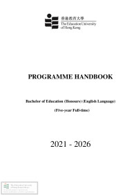 Education University of Hong KongProgramme handbook : Bachelor of education (Honours) (English language) (five-year full-time) /