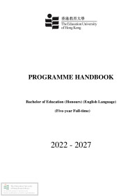Education University of Hong Kong Faculty of HumanitiesProgramme handbook : Bachelor of education (Honours) (English language) (five-year full-time) /