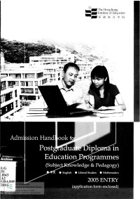 香港教育學院 持續專業教育學部Admission handbook for Postgraduate Diploma in Education Programmes : subject knowledge & pedagogy /