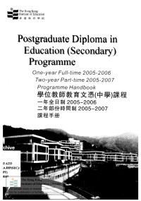 Hong Kong Institute of EducationTwo-year part-time postgraduate diploma in education (secondary) programme : programme handbook = 兩年部份時間制學位教師教育文憑(中學)課程 : 課程手册 /
