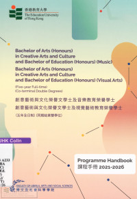 Education University of Hong Kong Faculty of Liberal Arts and Social SciencesProgramme handbook : Bachelor of arts (honours) in creative arts and culture and Bachelor of education (honours) (music), Bachelor of arts (honours) in creative arts and culture and Bachelor of education (honours) (visual arts) (five-year full-time) (co-terminal double degrees) = 創意藝術與文化榮譽文學士及音樂教育榮譽學士 創意藝術與文化榮譽文學士及視覺藝術教育榮譽學士(五年全日制) (同期結業雙學位)