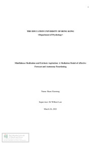 Mindfulness meditation and extrinsic aspiration : a mediation model of affective forecast and autonomy functioning /