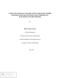 Zhang, JinxuanA study of the experiences of sexuality in male young people with high-functioning autism spectrum disorder and its Implications for the promotion of sexuality education /