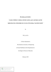 Tung, Ling NgaiBecoming a preschooler : a study of children's relations with their teachers, peers and objects and the implications these relationships have in terms of becoming a "preschool student" /
