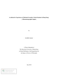 Tse, Lok TinAcculturative experiences of Pakistani secondary school students in Hong Kong : a phenomenographic inquiry /