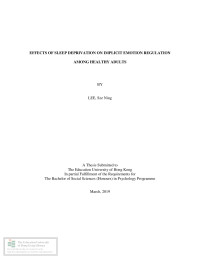 Effects of sleep deprivation on implicit emotion regulation among healthy adults /