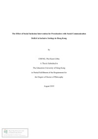Mu, WenwenThe effect of social inclusion intervention for preschoolers with social communication deficit in inclusive settings in Hong Kong /