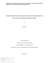 Lee, Sze NingStigma resistance and mental health among sexual minorities in Hong Kong : a moderated mediation model /