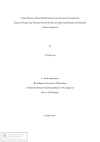 Cheng, Wai Kuen LibbyCulture mixing, cultural identification and acculturation in Hong Kong : effects of hong kong-mainland culture mixing on hong kong residents and mainland chinese sojourners /