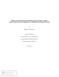 Lam, ShuenEfficacy of a motivational interviewing program to improve college students' physical activity engagement : a randomized controlled trial study /