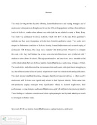 Chou, Sin YuRelationships between dyslexic identity, learned helplessness and coping of adolescents with dyslexia : an exploratory study in Hong Kong context /