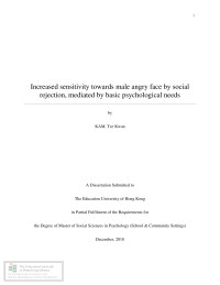Cheung, Vincent Fan SangIncreased sensitivity towards male angry face by social rejection, mediated by basic psychological needs /