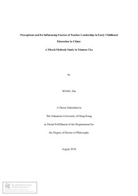 Lui, Tze Lueng RickPerceptions and its influencing factors of teacher leadership in early childhood education in China : a mixed-methods study in Xiamen City /