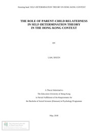 Cheung, Kowk WingThe role of parent-child relatedness in self-determination theory in the Hong Kong context /
