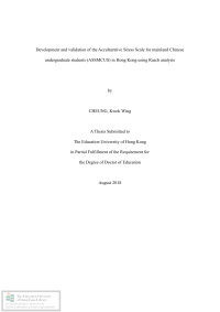 Hsu, Mei Hua KerryDevelopment and validation of the acculturative stress scale for mainland Chinese undergraduate students (ASSMCUS) in Hong Kong using rasch analysis /