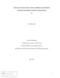 Shek, King ChingEnhancing need satisfaction to improve adjustment in mainland Chinese student in Hong Kong /
