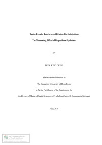 Zhou, ZifengTaking exercise together and relationship satisfaction : the moderating effect of dispositional optimism /
