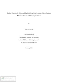 Reading motivation in Chinese and English in Hong Kong secondary schools students : influence of schools and demographic factors /