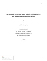 Lee, Kwok WaiUsing socio-scientific issues to promote students' metacognitive regulation, self-efficacy and conceptual understanding in an ecology classroom /