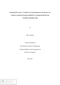 Wong, Kit ChingExamining EFL learners' vocabulary learning engagement and outcomes in a seamless learning environment mediated by an augmented reality app-VocabGO in mainland China /