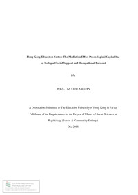 Education University of Hong Kong Faculty of Liberal Arts and Social SciencesHong Kong education sector : the mediation effect psychological capital has on collegial social support and occupational burnout /