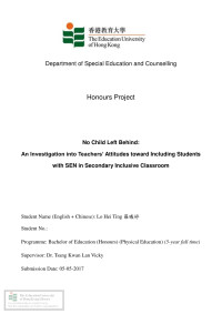 黃祖欣No child left behind : an investigation into teachers' attitudes toward including students with SEN in secondary inclusive classroom /