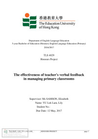 Education University of Hong KongThe effectiveness of teacher's verbal feedback in managing primary classrooms /