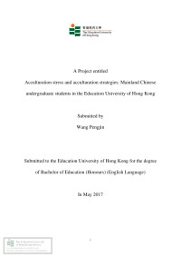 Yu, Lok LamAcculturation stress and acculturation strategies : Mainland Chinese undergraduate students in the Education University of Hong Kong /