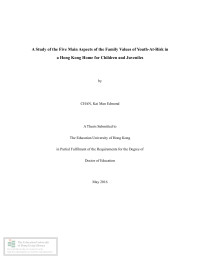 Hong Kong Institute of EducationA study of the five main aspects of the family values of youth-at-risk in a Hong Kong home for children and juveniles /
