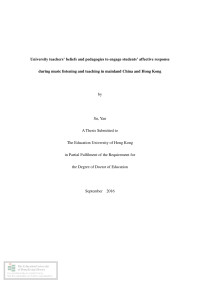 Chan, Kai Man EdmondUniversity teachers' beliefs and pedagogies to engage students' affective response during music listening and teaching in mainland China and Hong Kong /