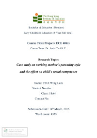 Wan, Shui LanCase study on working mother's parenting style and the effect on child's social competence /