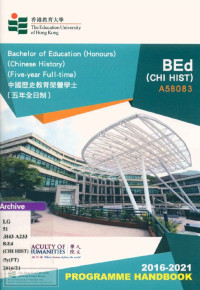 Education University of Hong Kong Faculty of Liberal Arts and Social SciencesProgramme handbook : Bachelor of education (Honours) (Chinese History) (five-year full-time) = 中國歷史教育榮譽學士(五年全日制) /