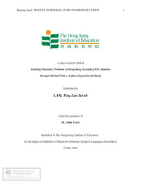 Education University of Hong KongTackling phonemic problems of Hong Kong secondary ESL students through minimal Pairs : quasi-experimental study /