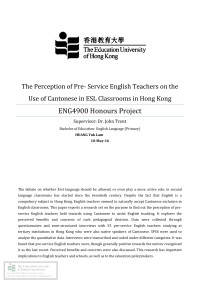 The perception of pre-service English teachers on the use of Cantonese in ESL classrooms in Hong Kong /