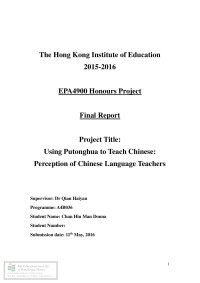 Chan, Hung HungUsing Putonghua to teach Chinese : perception of Chinese language teachers /