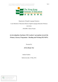 An investigation of primary ESL teachers' perceptions toward the primary literacy programme : reading and writing (PLP-R/W) /