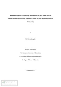 Lee, Yu Kiu RaymondMission and challenge : a case study on supporting the non-Chinese speaking students integrate into the local education system in an aided multiethnic school in Hong Kong /