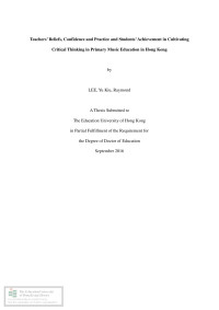 Teachers' beliefs, confidence and practice and students' achievement in cultivating critical thinking in primary music education in Hong Kong /