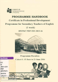 Hong Kong Institute of EducationProgramme handbook : certificate in professional development programme for secondary teachers of English (1 week) /