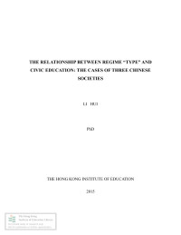 Székely, EmiliaThe relationship between Regime "Type" and civic education : the cases of three Chinese societies /