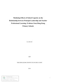 Au, Wai Chun CherryMediating effects of school capacity on the relationship between principal leadership and teacher professional learning : evidence from Hong Kong primary schools /