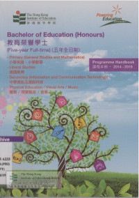 Coniam, DavidProgramme handbook : Bachelor of Education (Honours)(Secondary)--Information and communication technology, Bachelor of Education(Honours)(Primary)--General studies and mathematics, Bachelor of Education(Honours)(Physical education), Bachelor of Education(Honours)(Visual arts), Bachelor of Education(Honours)(Music), Bachelor of Education(Honours)(Liberal studies) (Five-year Full-time) = 中學教育榮譽學士--資訊及通訊科技, 小學教育榮譽學士--常識及數學, 體育教育榮譽學士, 視覺藝術教育榮譽學士, 音樂教育榮譽學士, 通識教育榮譽學士 (五年全日制)