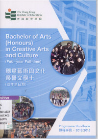 Hong Kong Institute of Education Faculty of Arts and SciencesProgramme handbook : Bachelor of arts (honours) in creative arts and culture(four-year full-time) = 創意藝術與文化榮譽文學士(四年全日制)