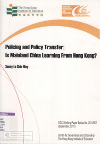 香港教育學院 課堂學習研究中心Policing and policy transfer : is Mainland China learning from Hong Kong? /