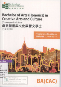 Hong Kong Institute of Education Dept. of Mathematics | Hong Kong Institute of Education Dept. of Mathematics, Science, Social Sciences and Technology | Hong Kong Institute of Education Dept. of Mathematics and Information TechnologyProgramme handbook : Bachelor of arts (honours) in creative arts and culture(three-year full-time) = 創意藝術與文化榮譽文學士(三年全日制)
