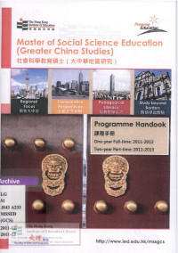 Hong Kong Institute of Education Faculty of Arts and SciencesProgramme handbook : Master of Social Science Education (Greater China Studies)(one-year full-time/two-year part-time) = 社會科學教育碩士(大中華地區研究)(一年全日制/二年部時間制)